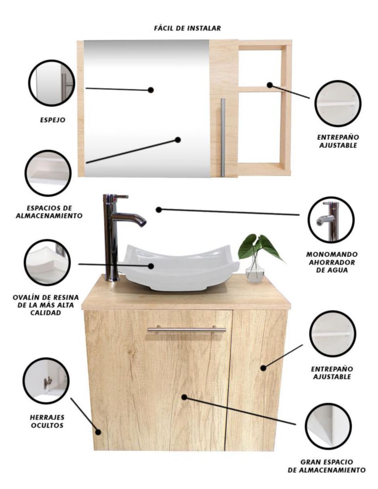 Combo de Gabinete para Baño 07 Derecho + Botiquin
