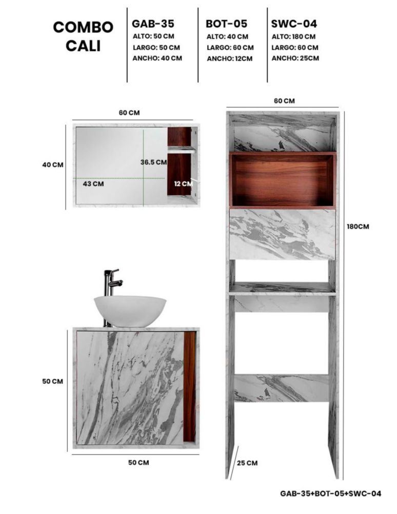 MueblesMuebles de BañoGabinetesCombo De Gabinetes CALI Para Baño.
