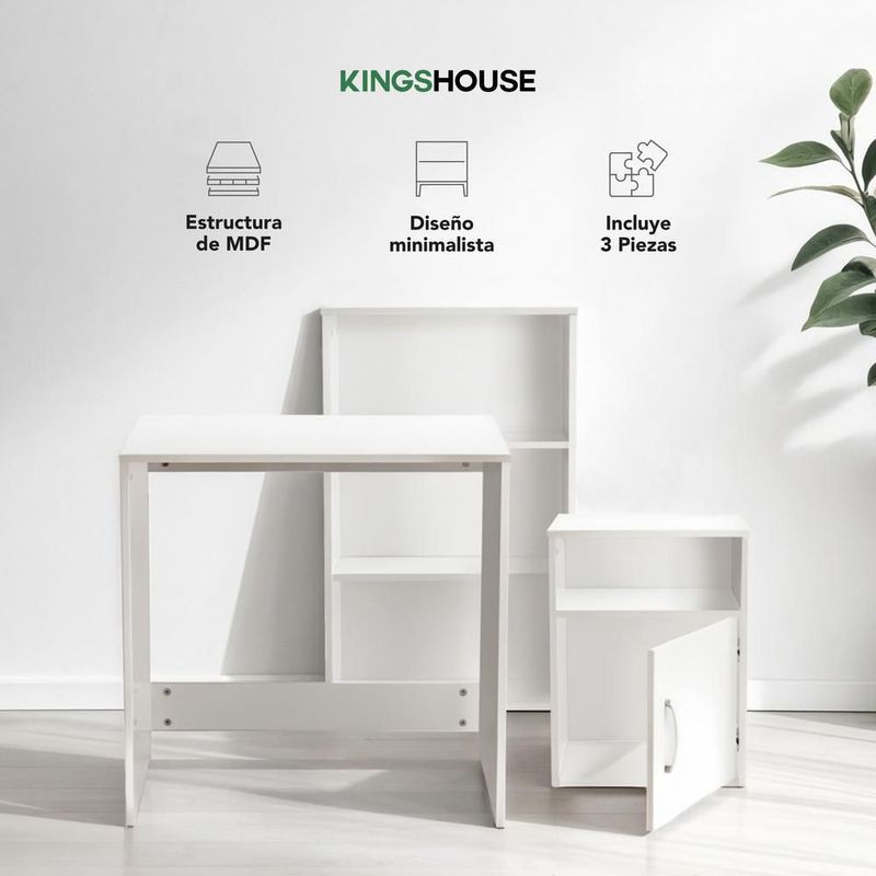 Combo escritorio, librero y archivero para hogar y oficina blanco