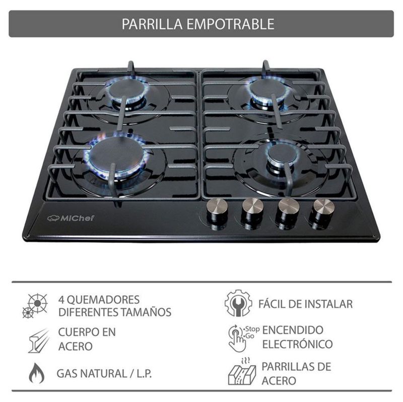 Combo Fusilli parrilla 60cm con 4 quemadores Y campana de pared 60cm