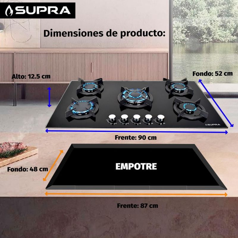 Combo parrilla con 5 quemadores de 90cm y campana de 87cm BELLAGIO