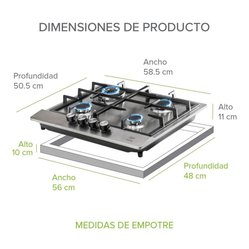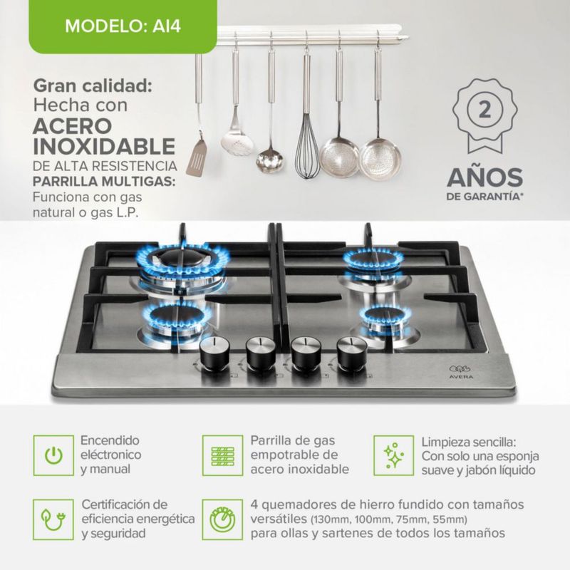 Combo Parrilla Gas 4 Quemadores AI4 y Campana Pared 60 cm CEA60 AVERA
