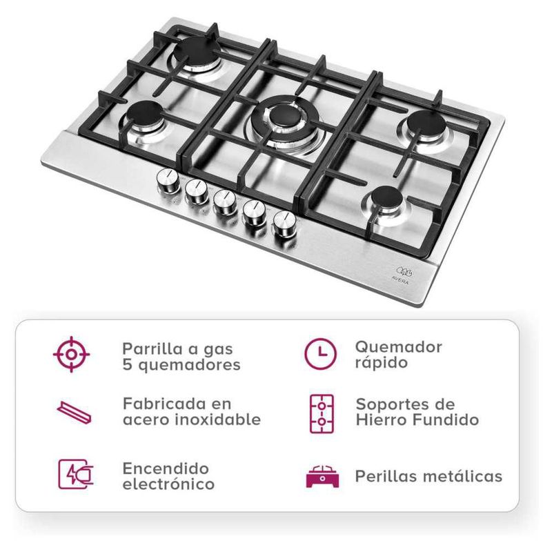Combo Parrilla Gas 5 Quemadores AI5 Campana Pared 76 cm CEV60B AVERA