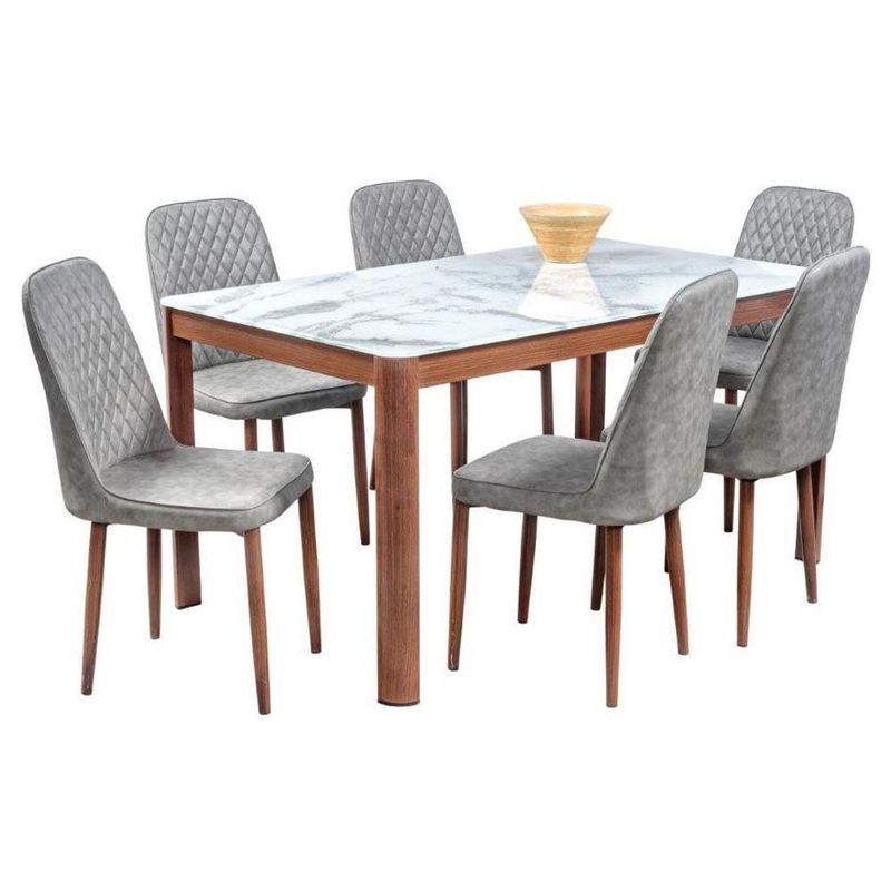 Comedor Chester Gris 6 Sillas Rectangular Tubular y Cristal