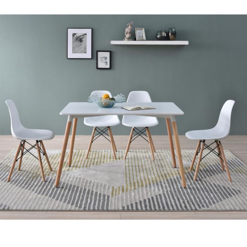 HogarPatio y JardínComedores y MesasComedor Completo Blanco con 4 Sillas con Patas de Madera y Soporte Metálico
