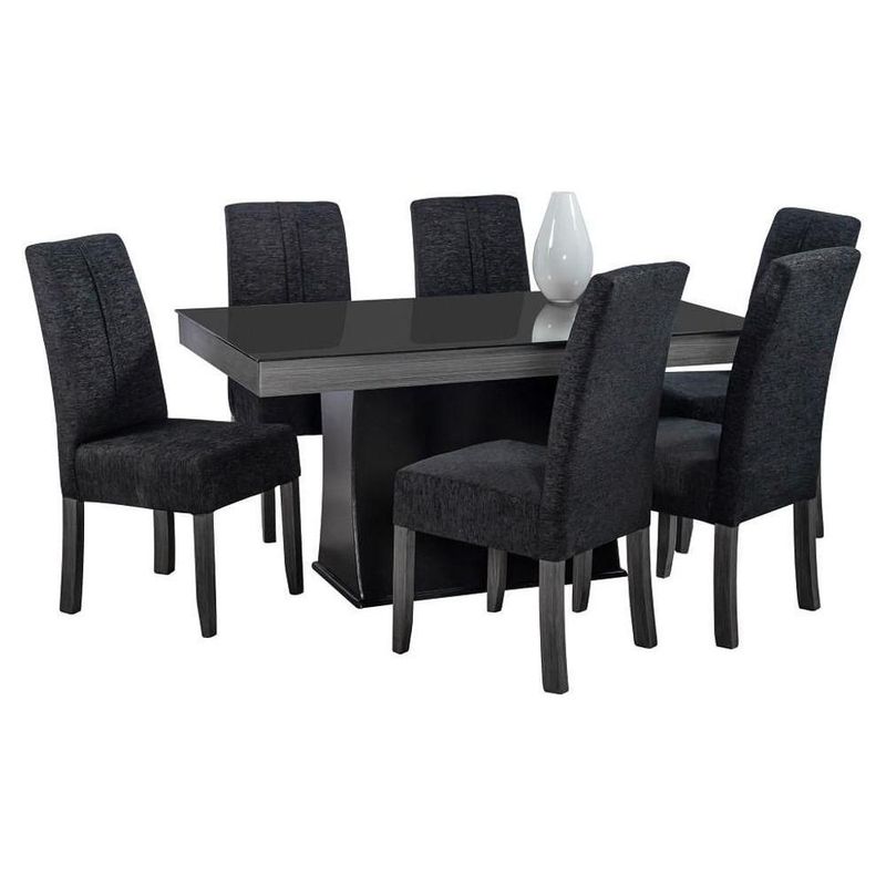 Comedor Giza 6 Sillas Tubular Madera y Cubierta Cristal Negro