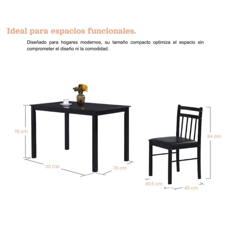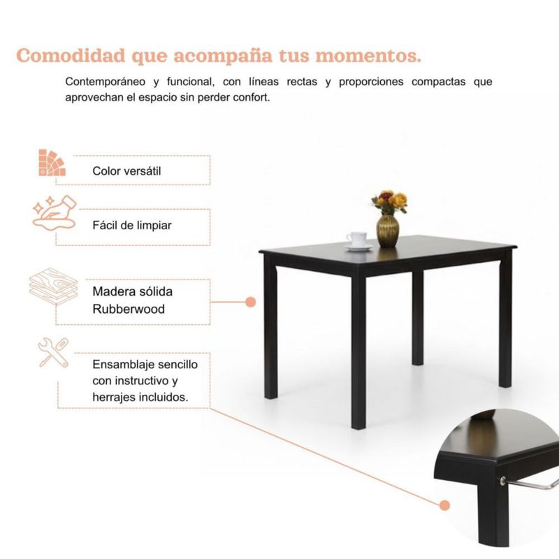 Comedor Omaha 4 Sillas de Madera Color Espresso