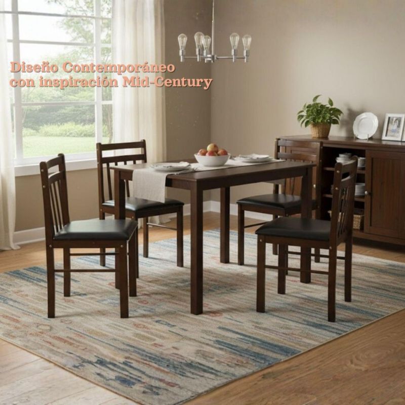 Comedor Omaha 4 Sillas de Madera Color Nogal