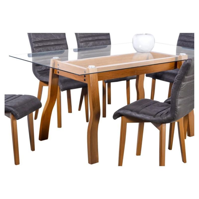 Comedor Parma Negro 6 Sillas Rectangular Madera y Cristal