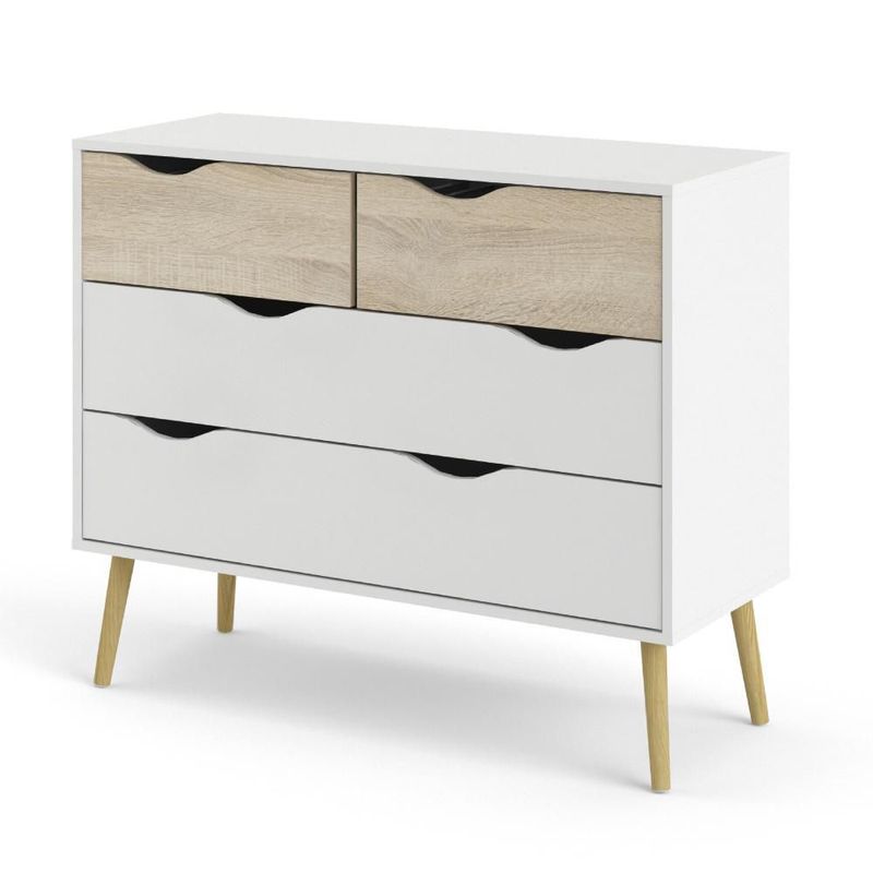 Cómoda Blanca y Madera con 4 Cajones. Estructura de Madera Industrial