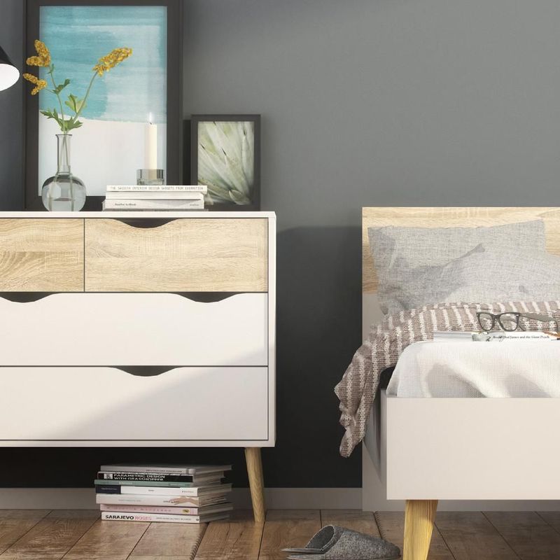 MueblesRecámaraCajoneras y CómodasCómoda Blanca y Madera con 4 Cajones. Estructura de Madera Industrial