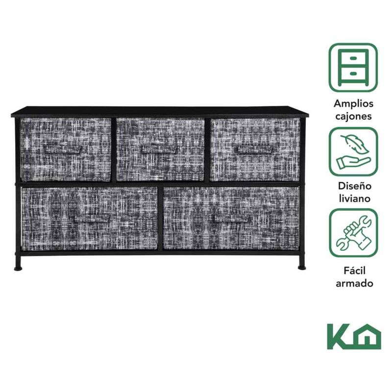 Comoda Cajonera de 5 Cajones Mueble Organizador Tela Madera
