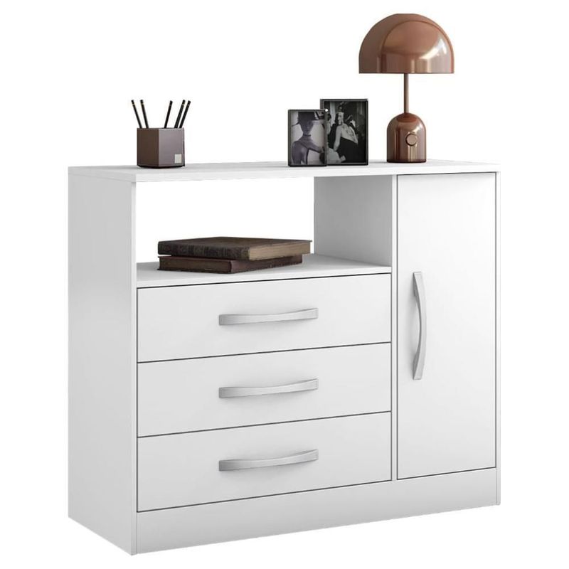 MueblesRecámaraCajoneras y CómodasCómoda Cajonera Moderna Con 3 Cajones 1 Puerta Color Blanco