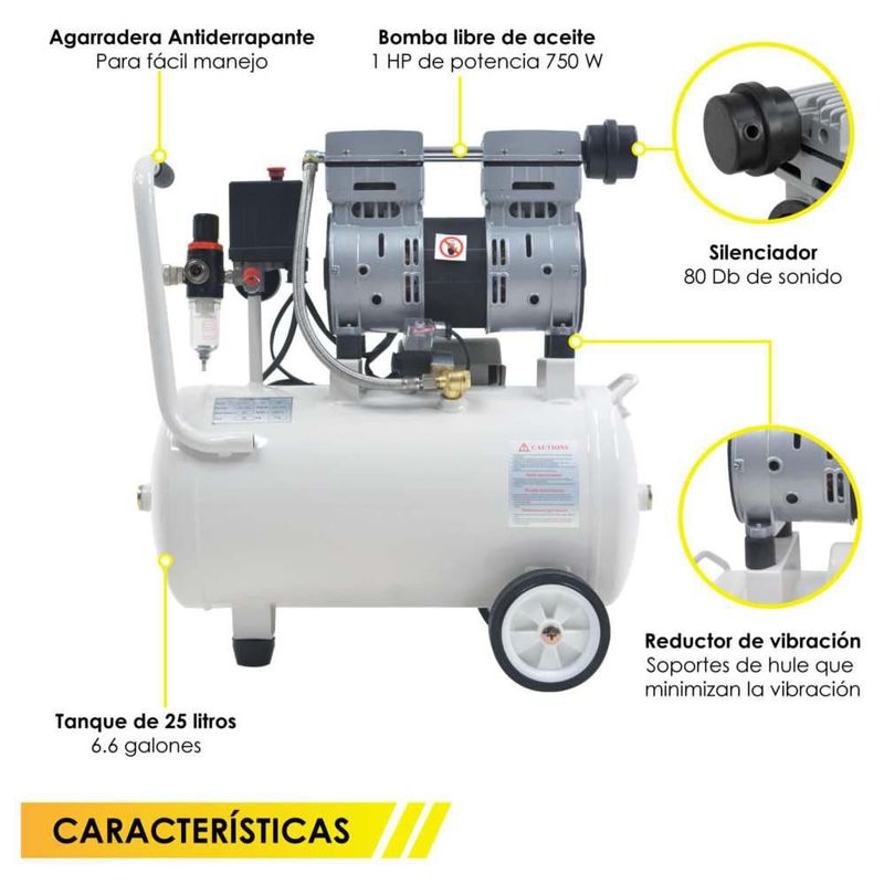 Compresor Aire Electrico Portatil 25 L 127V 1Hp 2 Pistones
