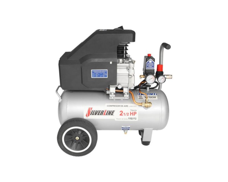 Compresor de Aire Lubricado Silverline Tanque de 24L 2.5HP Color Gris