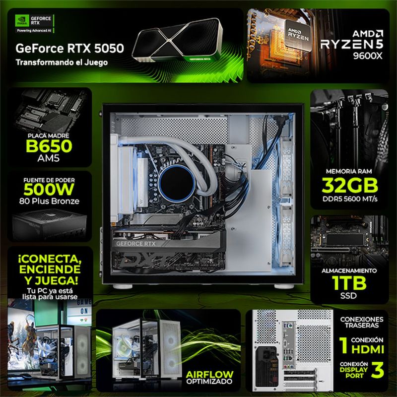 CómputoDe escritorioDesktop GamingComputadora gamer dxt rtx 5050 ryzen 5 32gb ssd monitor 27