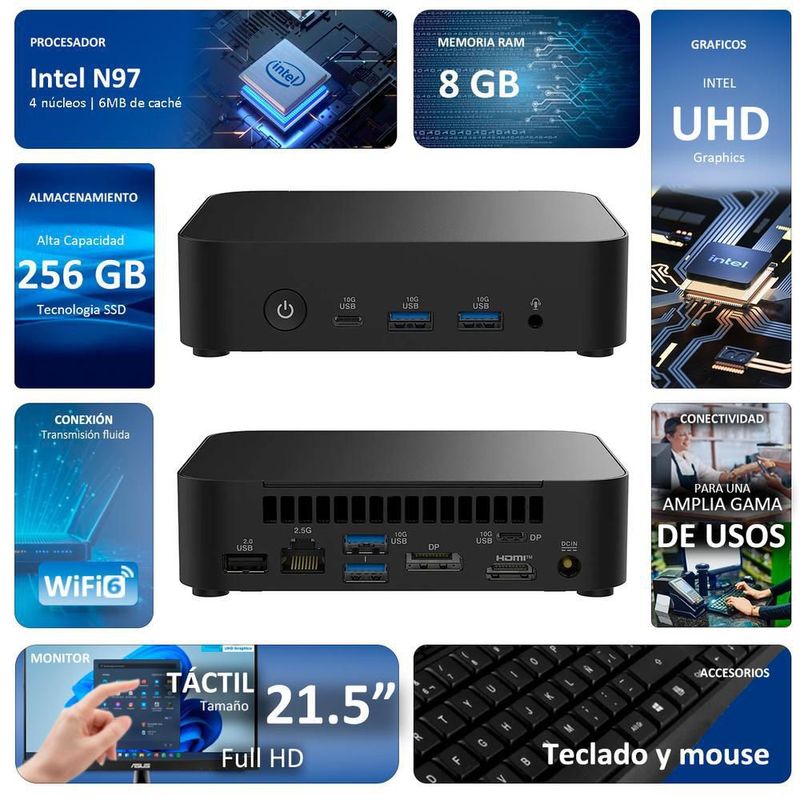 CómputoDe escritorioDesktopComputadora mini pc asus n97 8gb 256gb 21.5" touch kit w11h