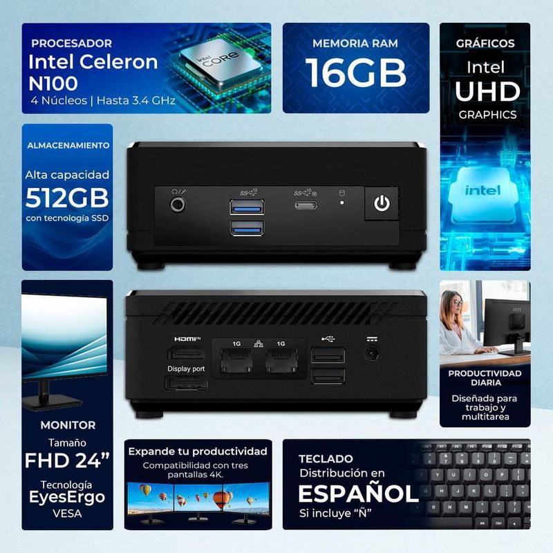 CómputoDe escritorioCPUComputadora mini pc msi celeron 16gb ssd 512gb monitor 24