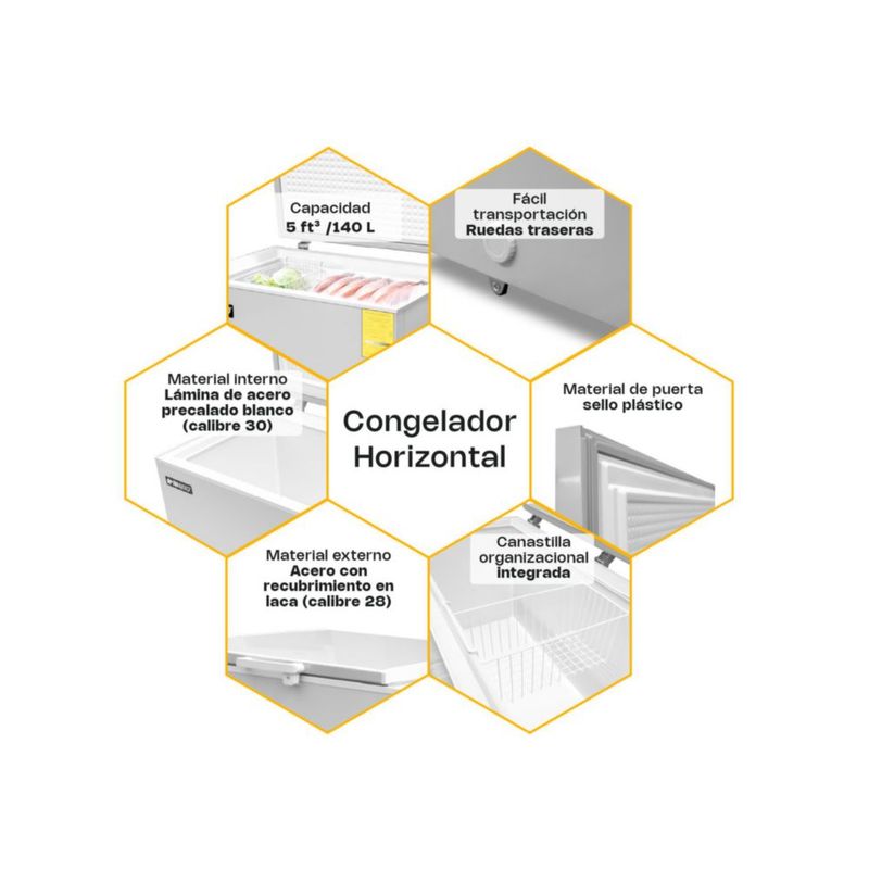 Línea blancaRefrigeradores y congeladoresCongeladoresCONGELADOR RHINO CONGECO-5 | Congelador Horizontal | Canastilla De A Acero | Carnicería Paletería Super Mercado