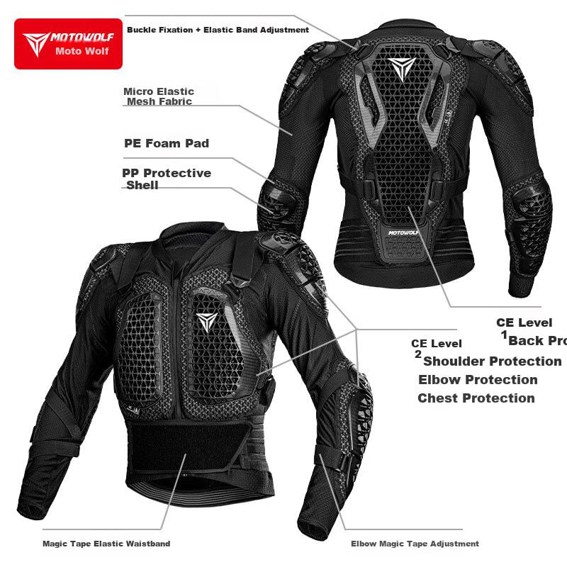 MotosRopa y zapatosProtecciónConjunto de Protección Motociclismo MOTOWOLF Negro Talla G