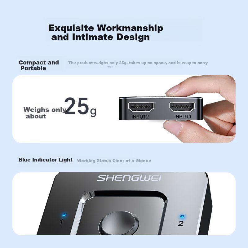 TelefoníaAccesorios para celularesCablesConmutador Shengwei HS10020G HDMI 2 Entradas 1 Salida Azul