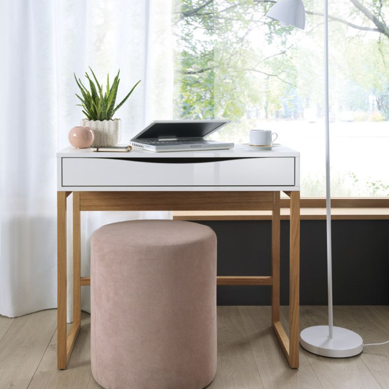 Consola Color Blanco y Madera con 1 Cajón y Estructura de Madera
