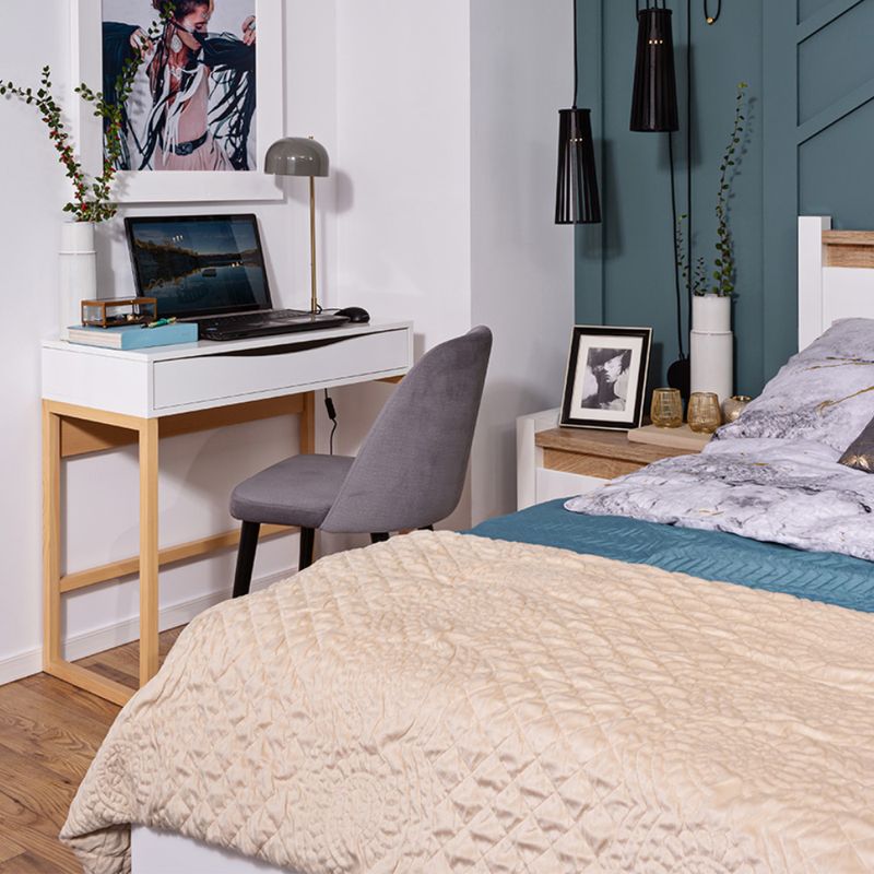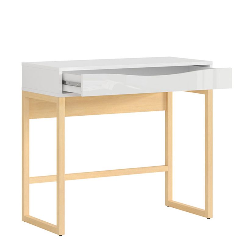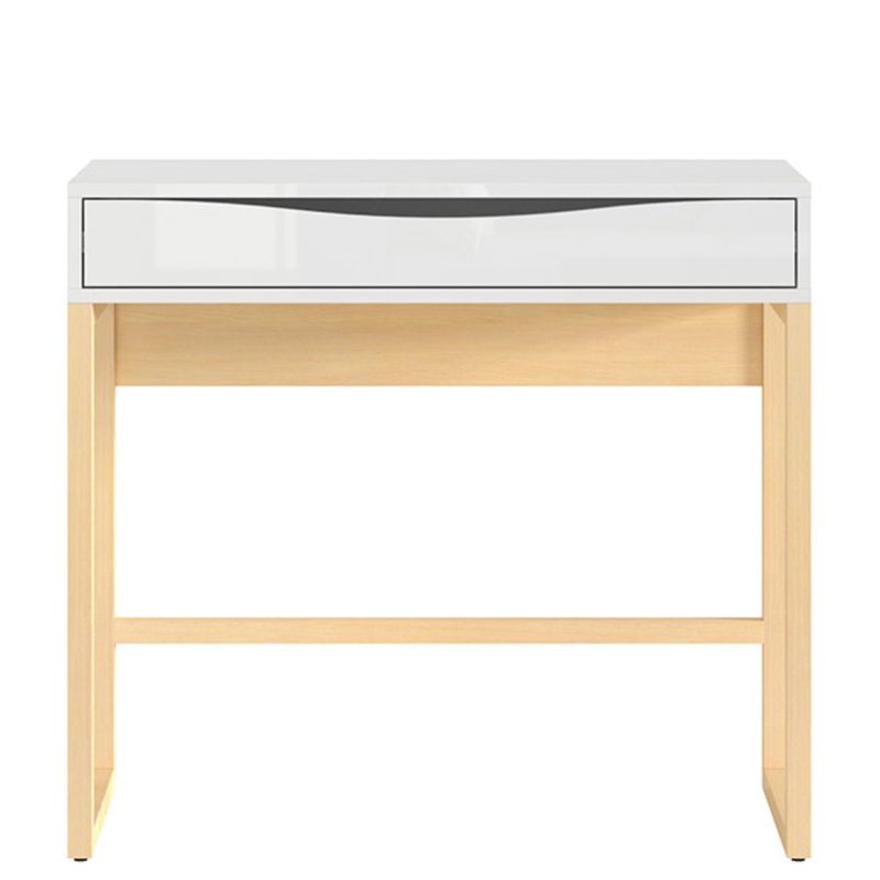 Consola Color Blanco y Madera con 1 Cajón y Estructura de Madera