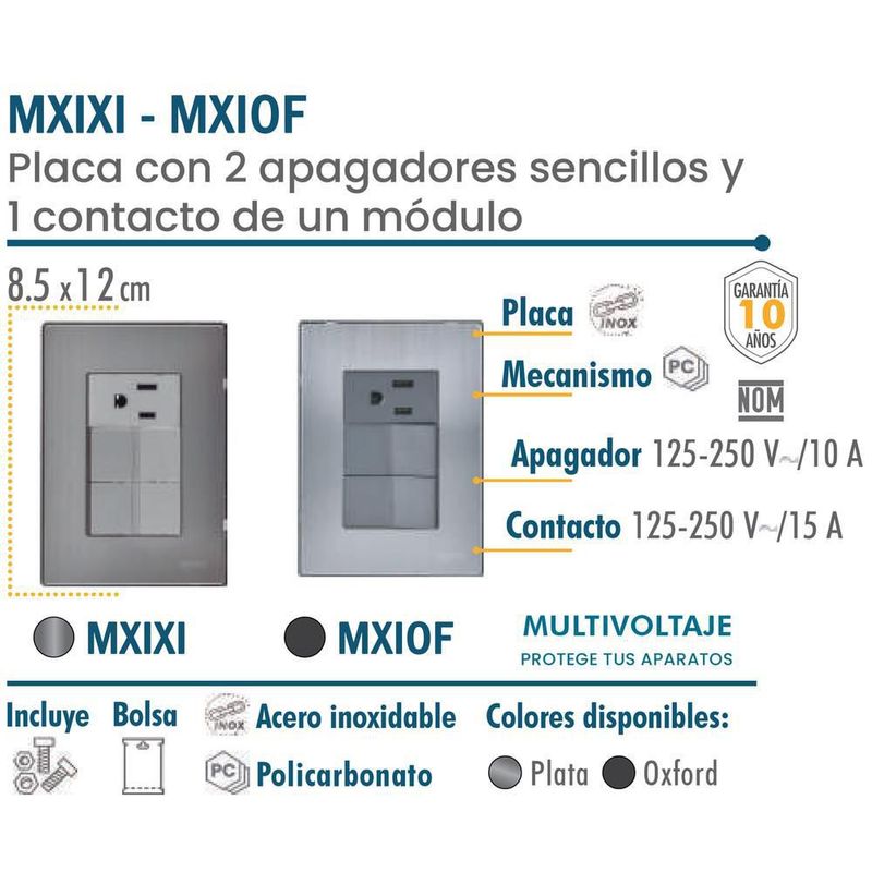 HerramientasMaterial EléctricoApagadores y ContactosContacto de Pared MXIXI-001 Inoxium2A1CSilver Tomacorriente Material Resistente