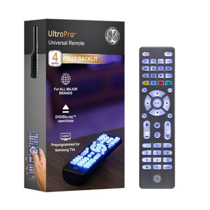 Control remoto universal GE con botones retroiluminados para 4 dispositivos