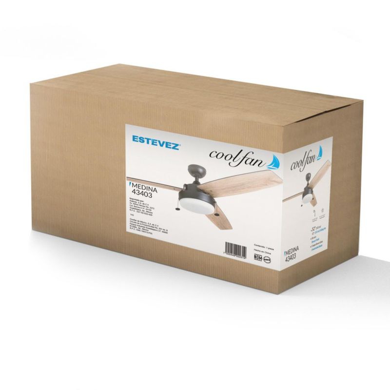 Línea blancaClimatización y VentilaciónVentiladoresCoolfan Ventilador de Techo con Luz de 52 Pulgadas con 3 Aspas Reversibles y Control de Cadena, Modelo Medina