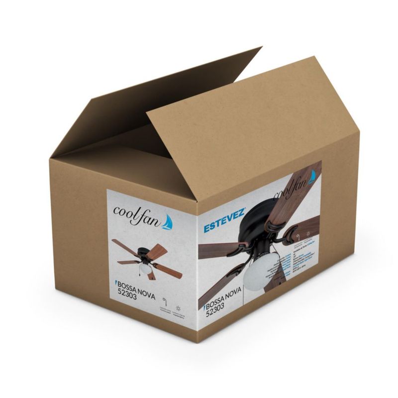 Línea blancaClimatización y VentilaciónVentiladoresCoolfan Ventilador de Techo de 42 pulgadas con Luz, 5 Aspas Reversibles de Madera con Control de Cadena, Modelo Bossa Nova