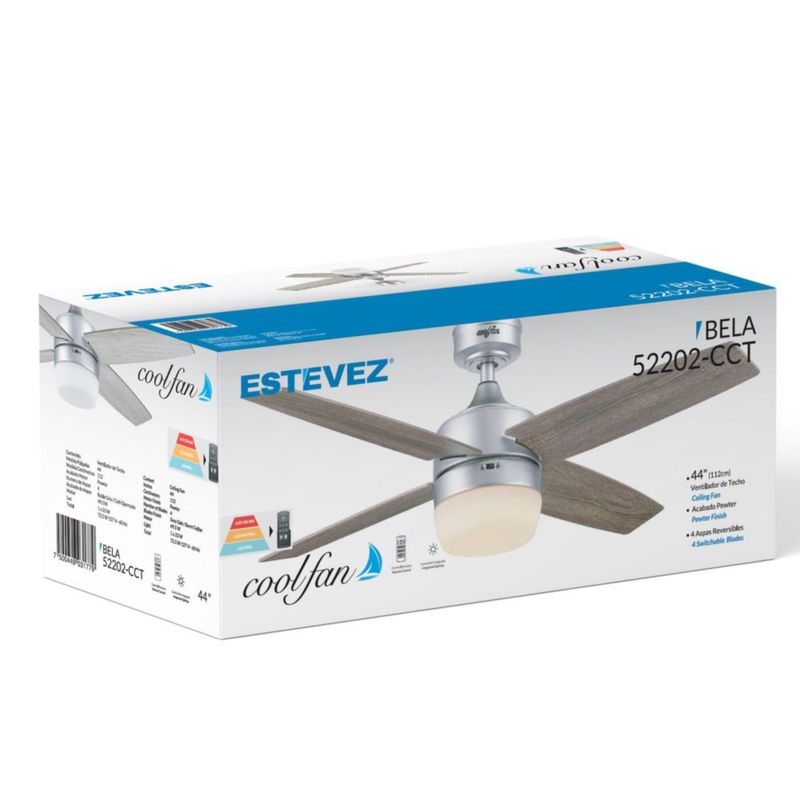 Línea blancaClimatización y VentilaciónVentiladoresCoolfan Ventilador de Techo de 44 Pulgadas con Luz LED y 4 Aspas Reversibles de Madera con Control Remoto