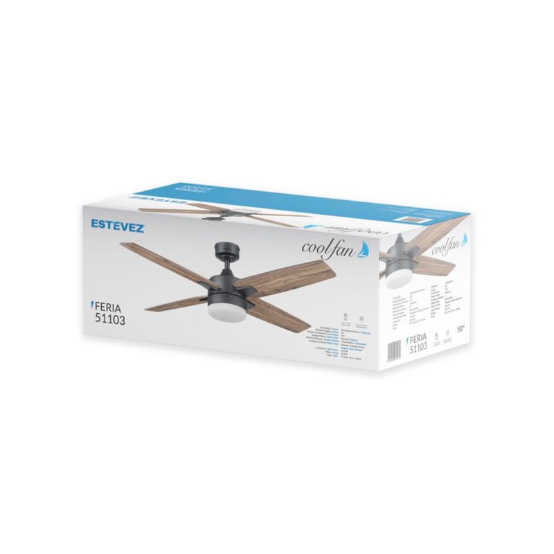 Coolfan Ventilador de Techo de 50 Pulgadas con Luz LED y 4 Aspas de Madera Reversibles con Control Remoto