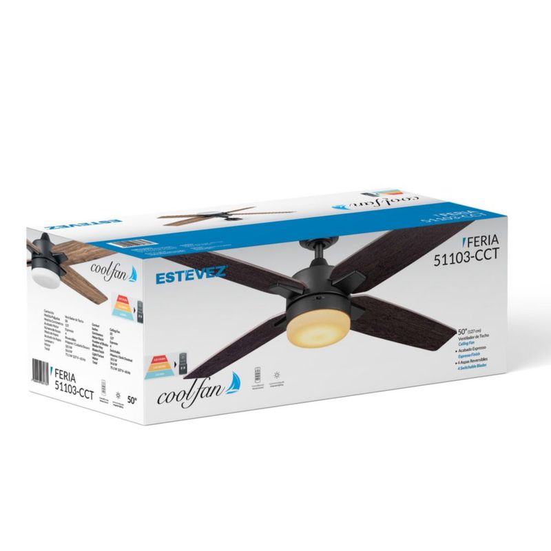 Línea blancaClimatización y VentilaciónVentiladoresCoolfan Ventilador de Techo de 50 Pulgadas con Luz LED y 4 Aspas de Madera Reversibles con Control Remoto