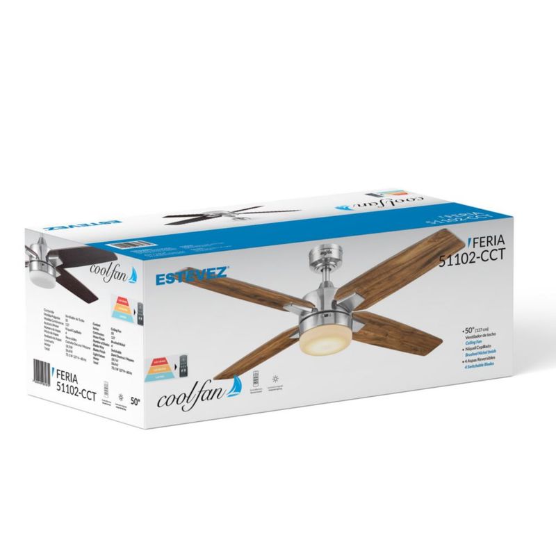 Coolfan Ventilador de Techo de 50 Pulgadas con Luz LED y 4 Aspas de Madera Reversibles con Control Remoto