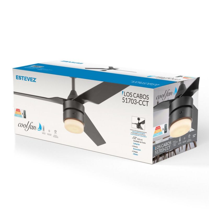 Coolfan Ventilador de Techo de 52 Pulgadas con Luz LED y 3 Aspas Plásticas con Control Remoto para Interior y Exterior