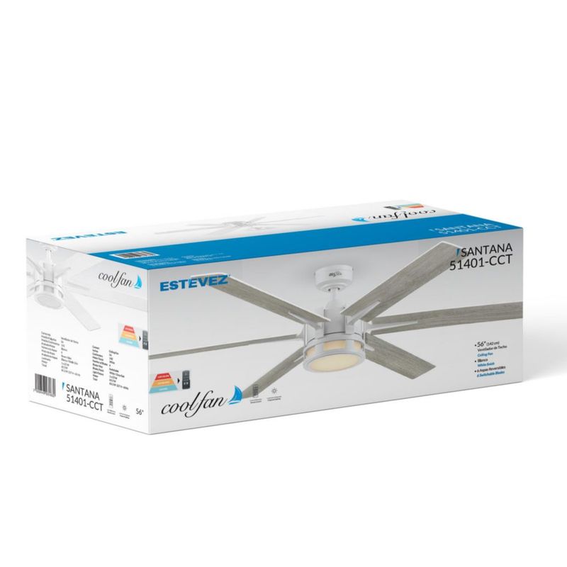 Coolfan Ventilador de Techo de 56 Pulgadas con Luz LED y 6 Aspas de Madera Reversibles con Control Remoto