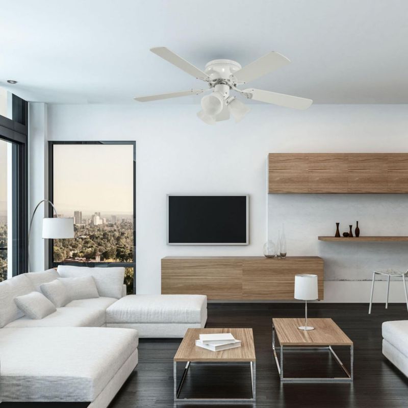 Línea blancaClimatización y VentilaciónVentiladoresCoolfan Ventilador de Techo de Madera de 42 Pulgadas con Luz y 5 Aspas Reversibles con Control de Cadena, Modelo Brisa