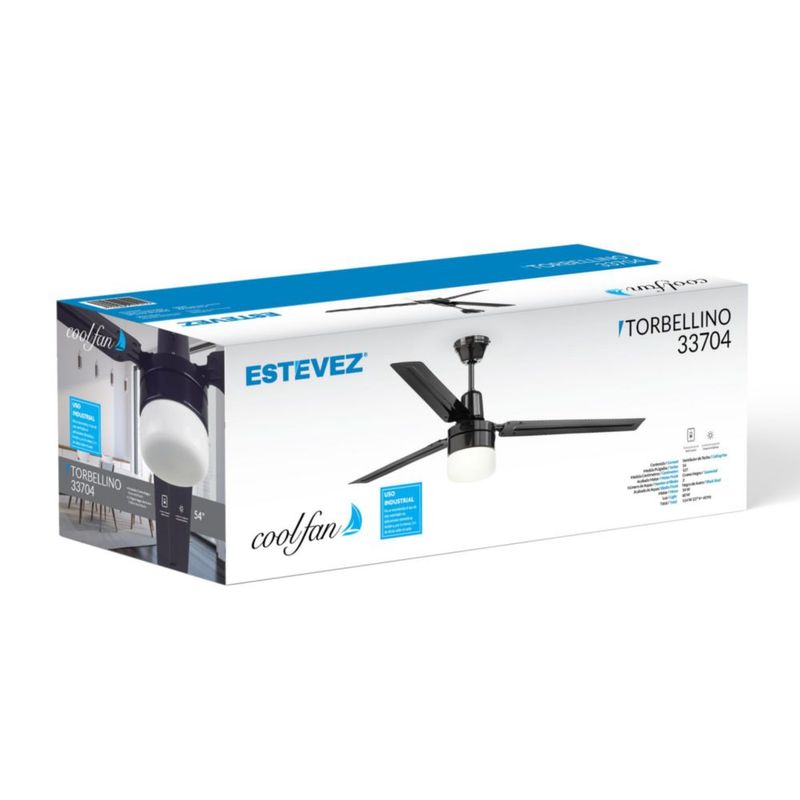Línea blancaClimatización y VentilaciónVentiladoresCoolfan Ventilador de Techo Industrial de 54 Pulgadas con Luz, Control de Pared y 3 Aspas