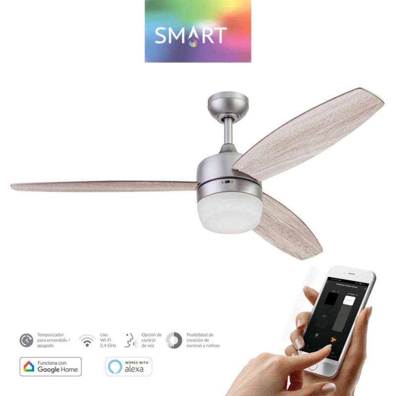 Coolfan Ventilador de Techo Smart de 52 Pulgadas con Luz LED y 3 Aspas Reversibles con Control de Cadena