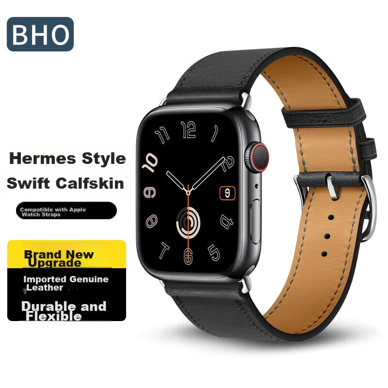 Correa de cuero BHO para Apple Watch Series 10/Ultra, 38/40/41mm, negro
