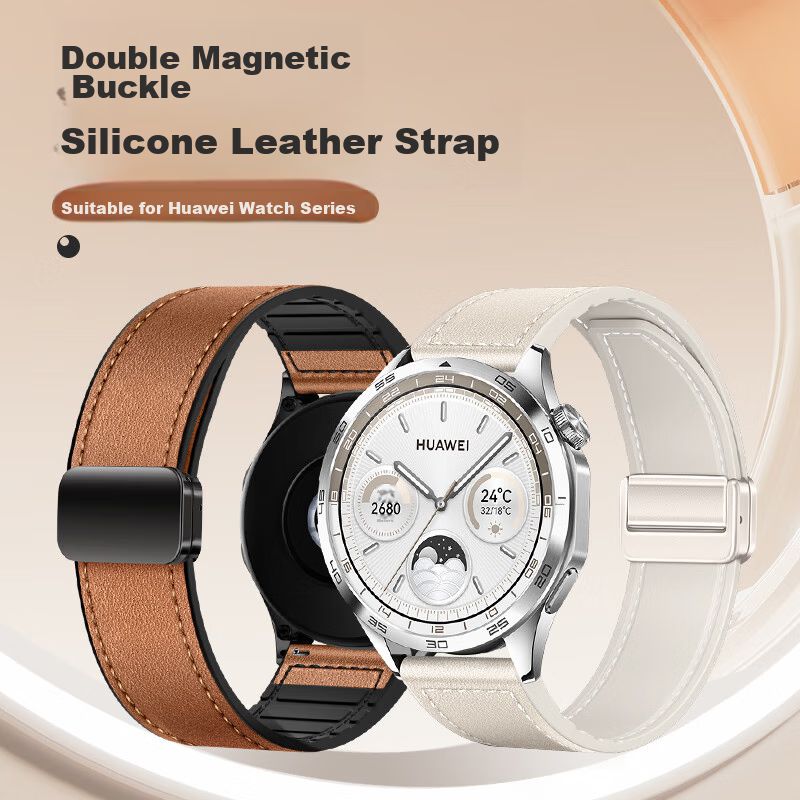 TelefoníaWearablesAccesorios para SmartwatchCorrea de cuero WEIQIANTU para Huawei Watch 4 Pro, 46 mm, marrón