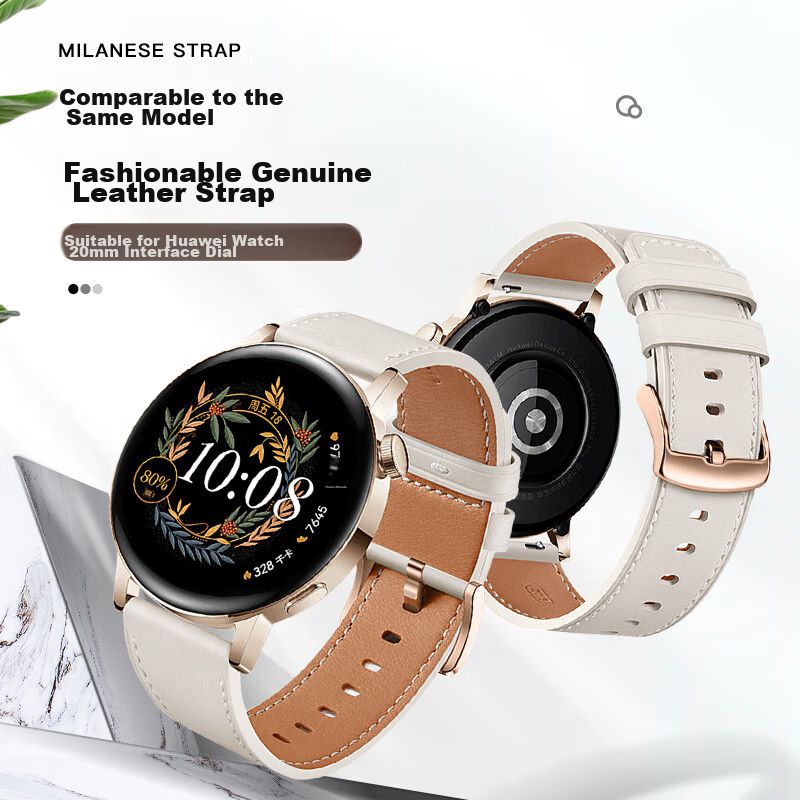 TelefoníaWearablesAccesorios para SmartwatchCorrea de cuero WEIQIANTU para Huawei Watch GT3/GT2/GT3 Pro, 20mm, blanca, mujer