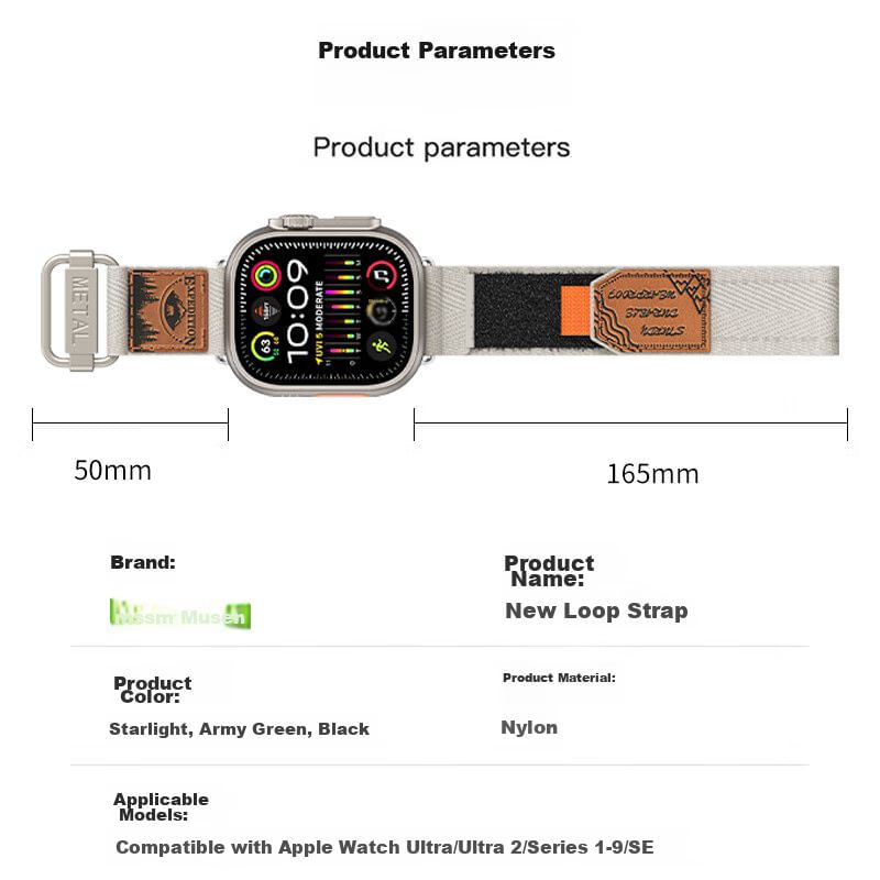 Correa De Nylon Mssm Para Apple Watch Ultra/Series 1-9/Se 44/45/46/49Mm Negro