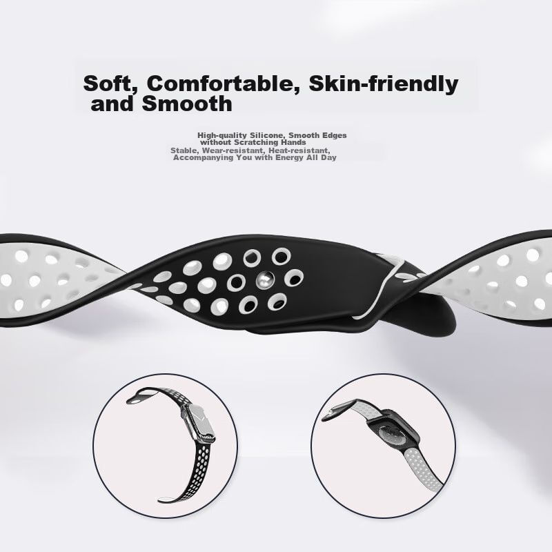 Correa De Silicona Bho Para Apple Watch S10/Ultra2/S9/S8/7/6/5/4/Se Negro Con Blanco