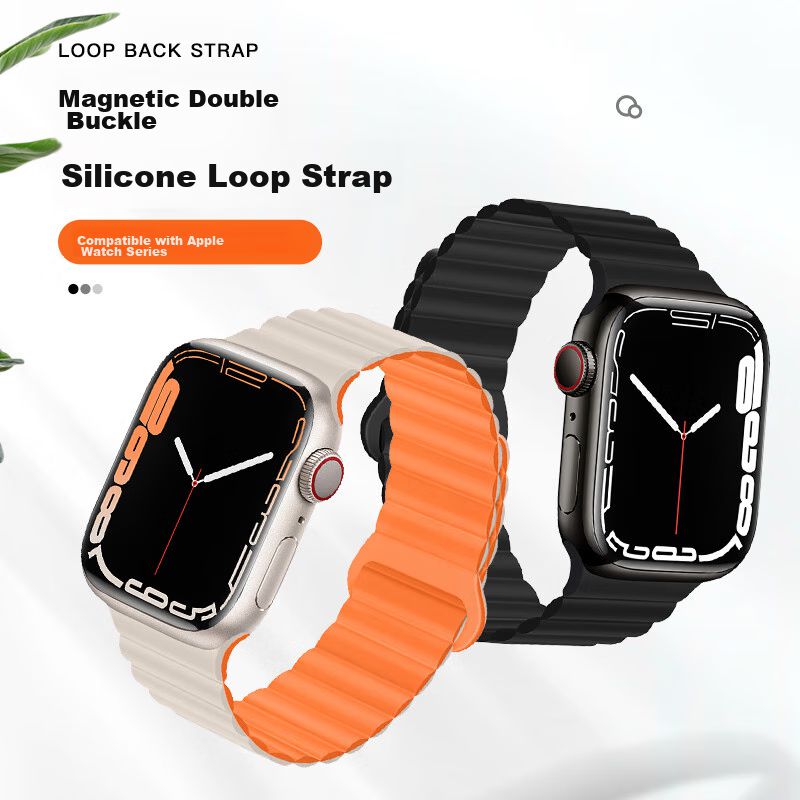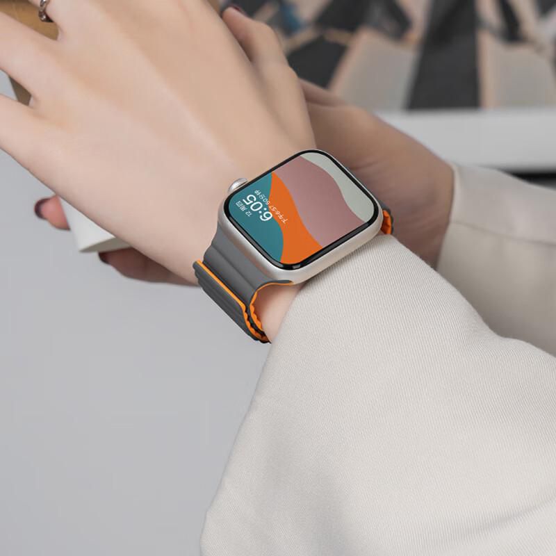 Correa De Silicona Wqtt Para Apple Watch 7/6/Se2/Ultra2/5 44/45/49Mm Gris Con Naranja