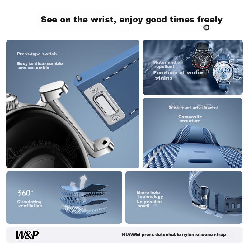 TelefoníaWearablesAccesorios para SmartwatchCorrea deportiva W&P para Huawei Watch 46/48 mm Nylon y silicona Azul claro