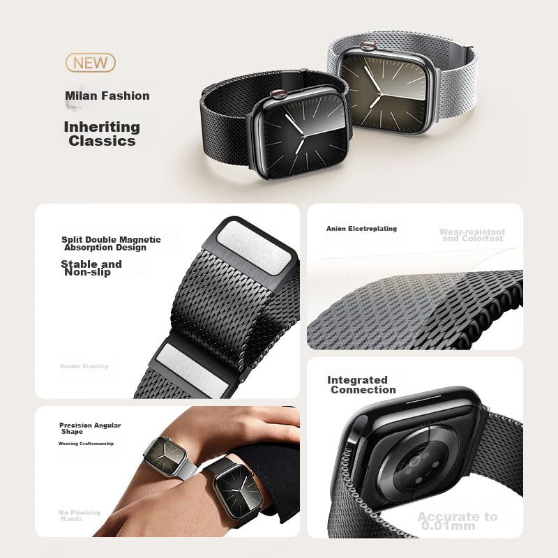 Correa W&P Milanese New Para Apple Watch Ultra 2 Y Series 10/9/8/7 Negra 45 Mm
