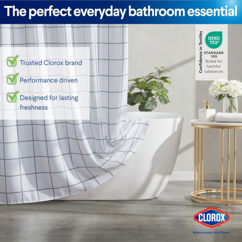Cortina de Ducha CLOROX 72"x72" Gris de Tela Waffle con Forro PEVA