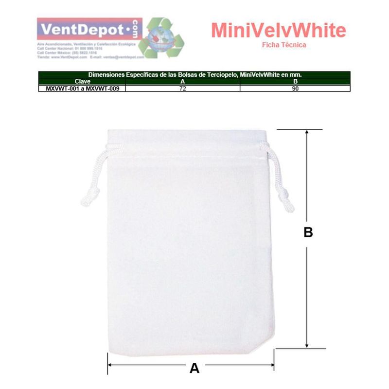 Moda y accesoriosBolsas y CarterasBolsasCostalitos Mni de Terciopelo MiniVelvWhite MXVWT-002 Bisuteria Bolsa Mini